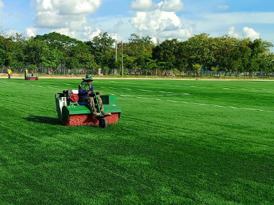 3. FIFA Standard Turf Installation: Professional turf laying with meticulous seam work and application of proper infill materials.