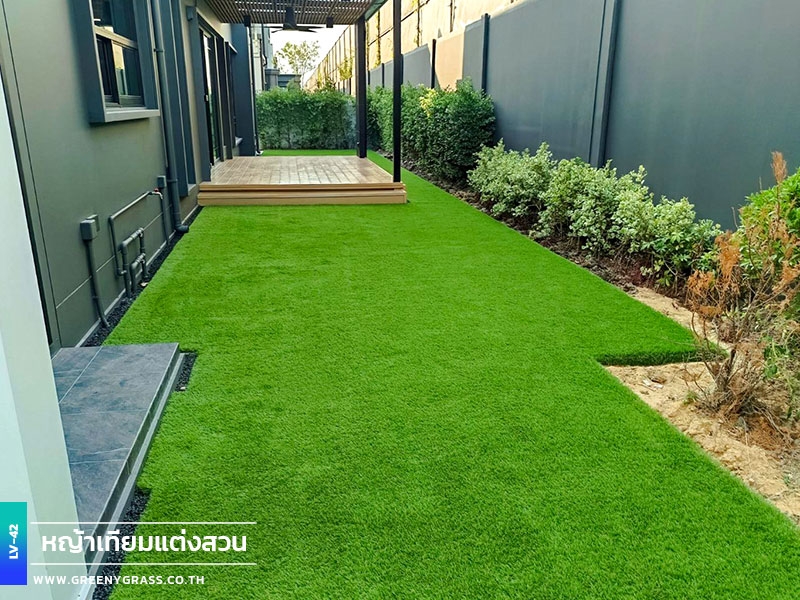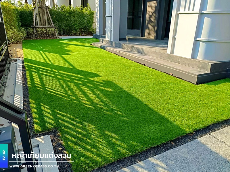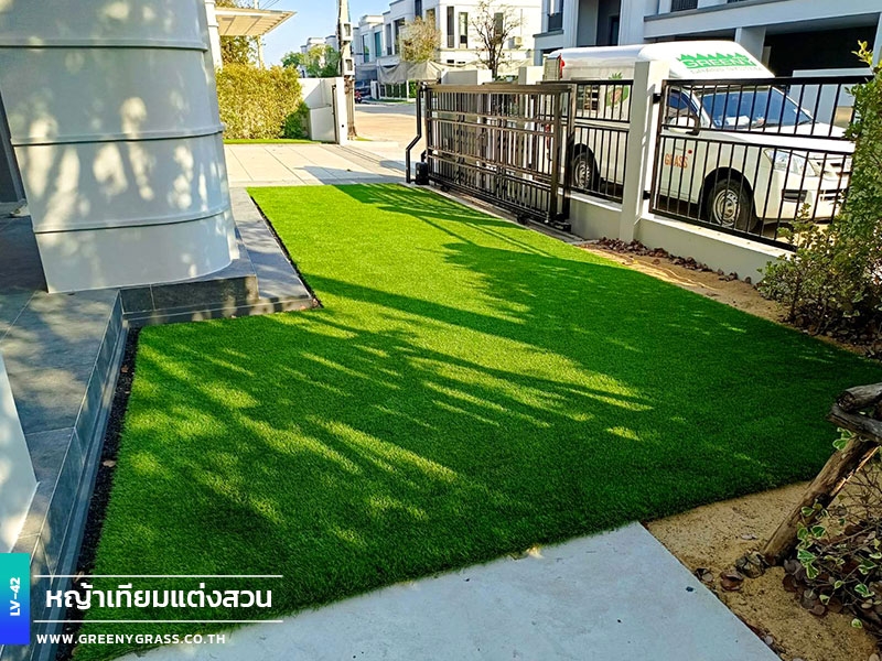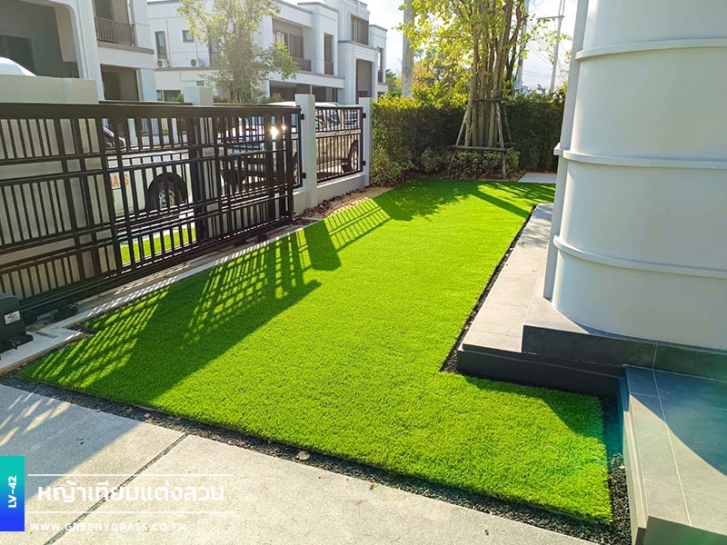 จัดสวน บ้านเศรษฐสิริ ราชพฤกษ์ - สาย 1 ออกแบบพื้นที่รอบบ้านให้ดูร่มรื่นเป็นระเบียบและใช้งานได้จริง ด้วยพื้นสนามสีเขียวดูเป็นธรรมชาติผิวสัมผัสเรียบสวย เลือกใช้วัสดุที่ช่วยลดภาระการดูแล ไม่ต้องรดน้ำ ตัดแต่ง หรือกังวลเรื่องพื้นดินแฉะ เหมาะสำหรับพื้นที่พักผ่อน สนามหน้าบ้านและโซนกิจกรรมของครอบครัว ตอบโจทย์บ้านพักอาศัยที่ให้ความสำคัญทั้งความสวยงาม ความเรียบร้อยและการใช้งานระยะยาวในทุกฤดูกาล