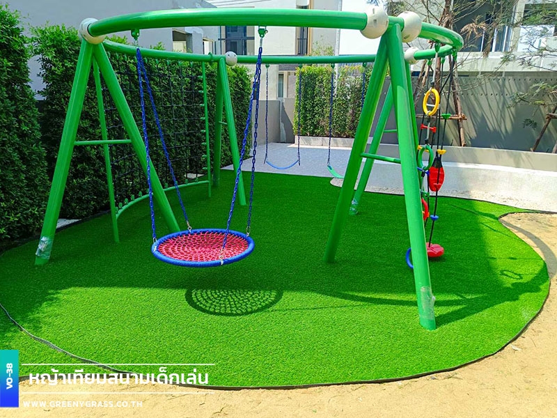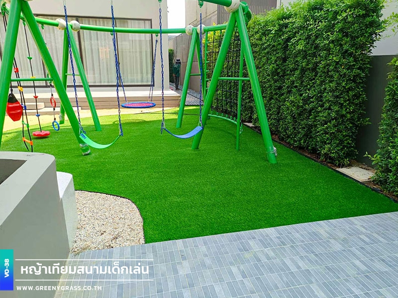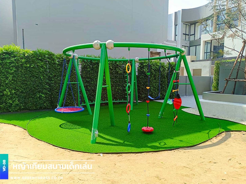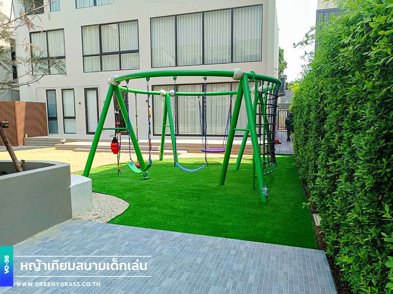 Home Playground Area at AVE Bangna-Sukhumvit, Artificial grass was installed around the play equipment to create a fresh, clean and inviting green space. The soft surface is ideal for children’s outdoor activities and helps reduce dust, dirt and mud.