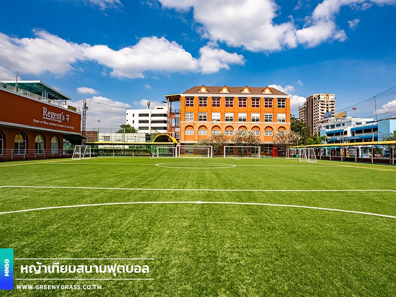 สนามฟุตบอล Regent's International School Bangkok ออกแบบเพื่อตอบโจทย์การเรียนการสอนและกิจกรรมกีฬาของนักเรียนทุกช่วงวัย โดยคำนึงถึงความปลอดภัยเป็นสำคัญ พื้นสนามเลือกใช้สนามหญ้าคุณภาพสูง ให้ผิวสัมผัสเรียบ รองรับการวิ่ง การเปลี่ยนทิศทาง หรือการใช้งานอย่างต่อเนื่อง เหมาะสำหรับการใช้งานแบบอเนกประสงค์ ทั้งการฝึกซ้อมการแข่งขันและกิจกรรมกลางแจ้ง ช่วยเสริมสร้างประสบการณ์การเรียนรู้ด้านกีฬาพัฒนาศักยภาพของนักเรียนอย่างรอบด้าน