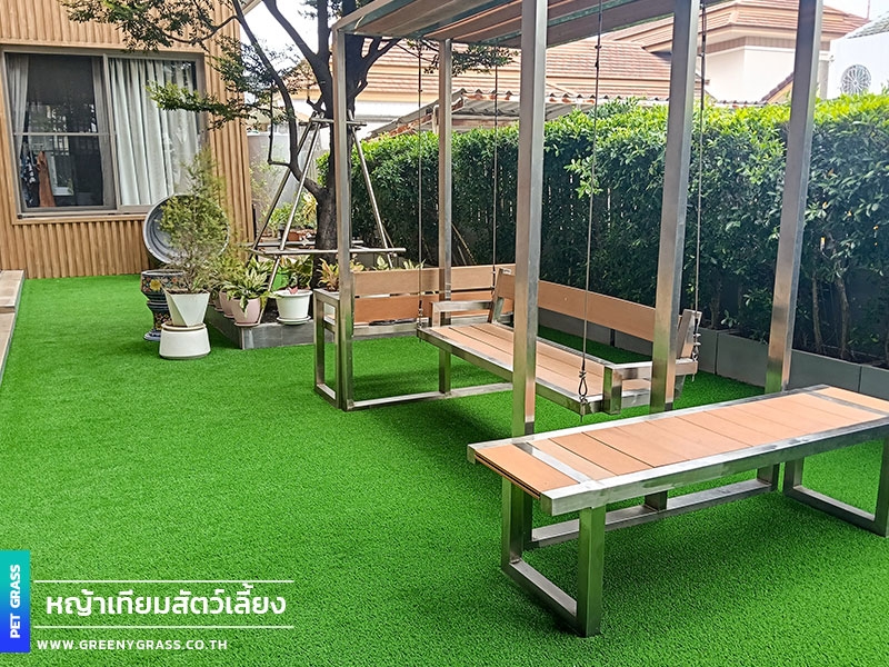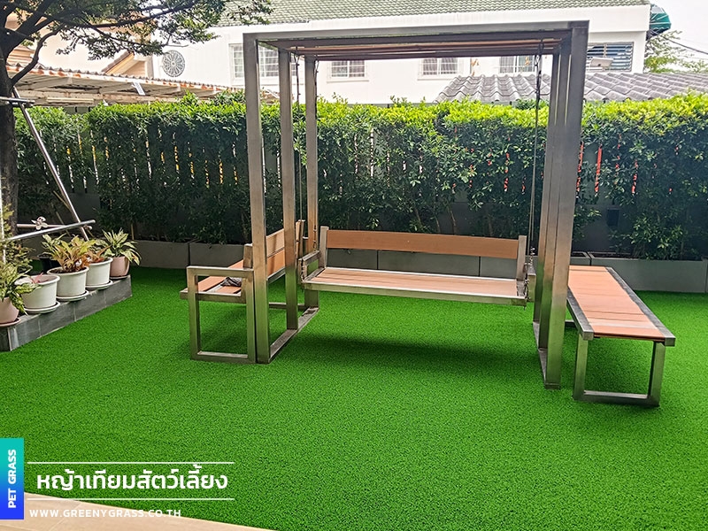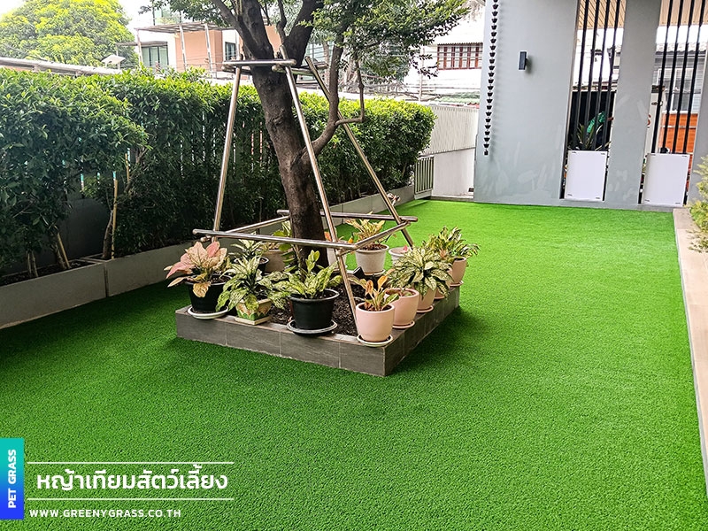 The landscaping project at a private residence on Charan Sanitwong Road was designed as a simple yet inviting relaxation area beside the house. The space offers a clean, comfortable, and calming atmosphere, bringing a natural touch to the home while creating a functional outdoor corner for everyday use. It also helps keep the area neat and well-organized compared to bare ground or natural grass.