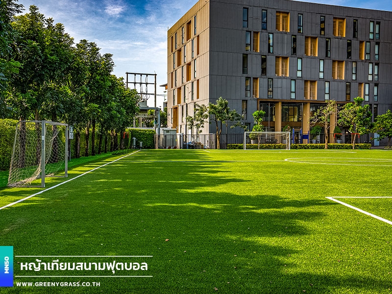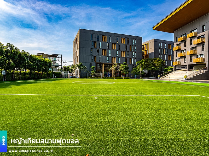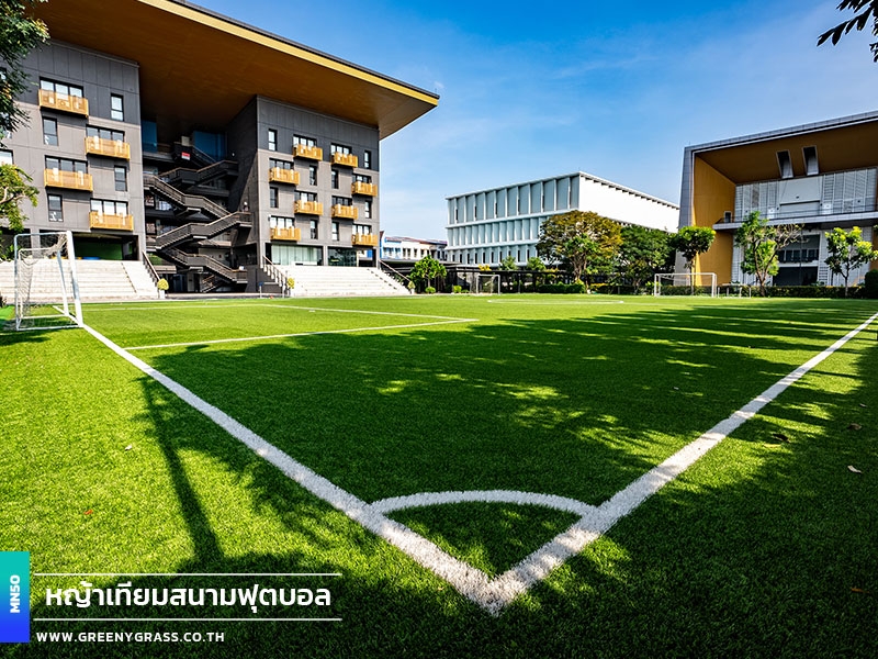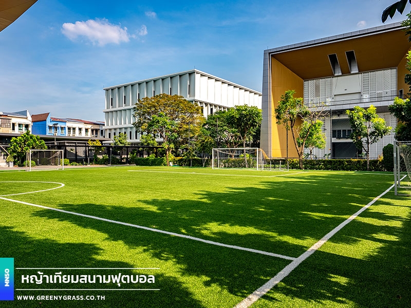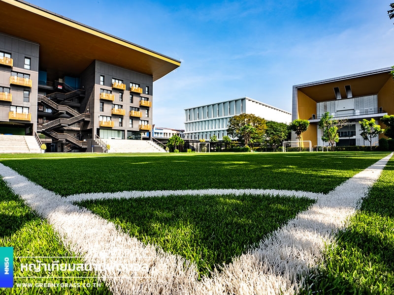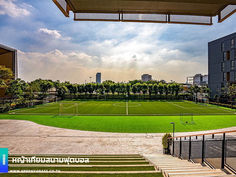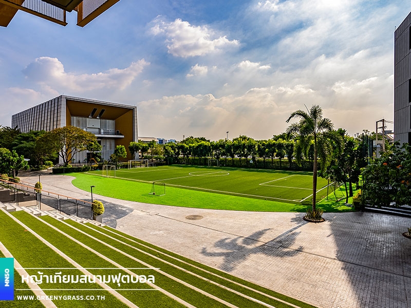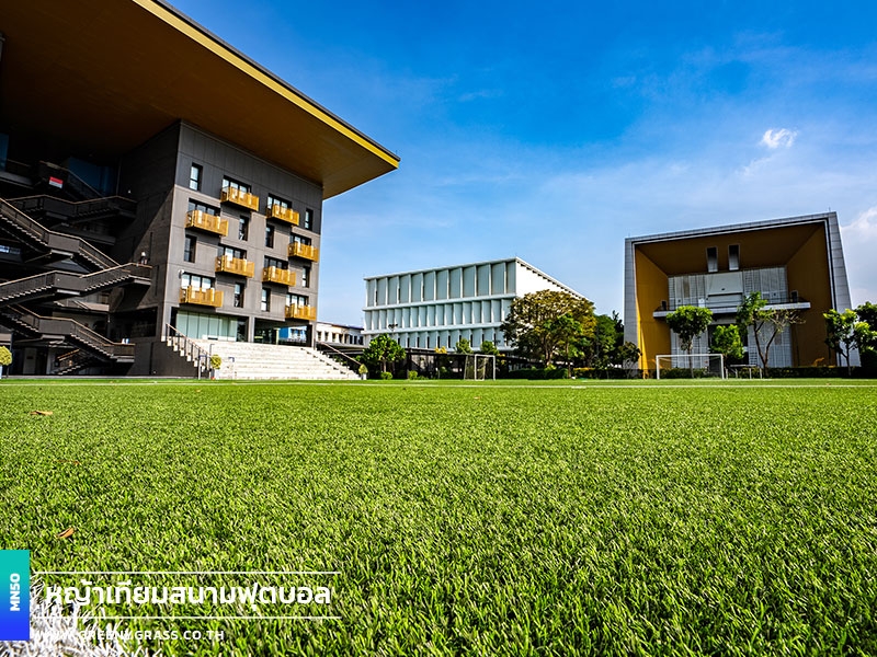 Singapore International School of Bangkok (SISB Pracha Uthit) designed this football field to help year-round school use, from physical education lessons and fundamental skills training to student activities. With FIFA-standard standards, fast-drainage technology, and enhanced infill stability, the project's MN50 football grass (Double C-Shape) helps reduce the floating of rubber granules. It has clean line markings, well-finished corners and edges, and a consistent surface for confident running, movement, and ball control. In addition to being playable in all weather situations and requiring less long-term care, the field is generally neat and well-maintained, improving the school's image while keeping the facility for everyday usage.