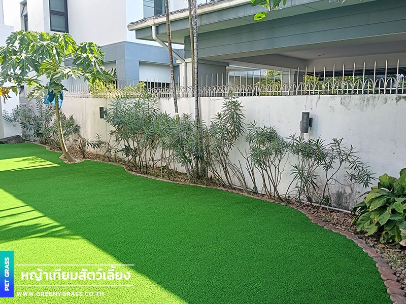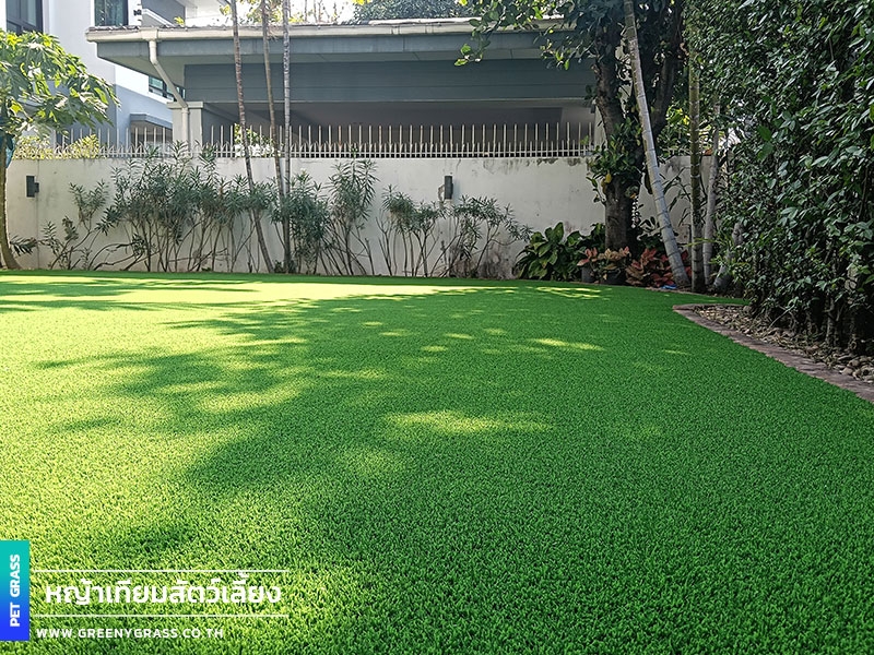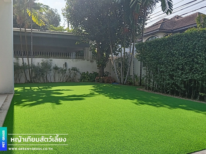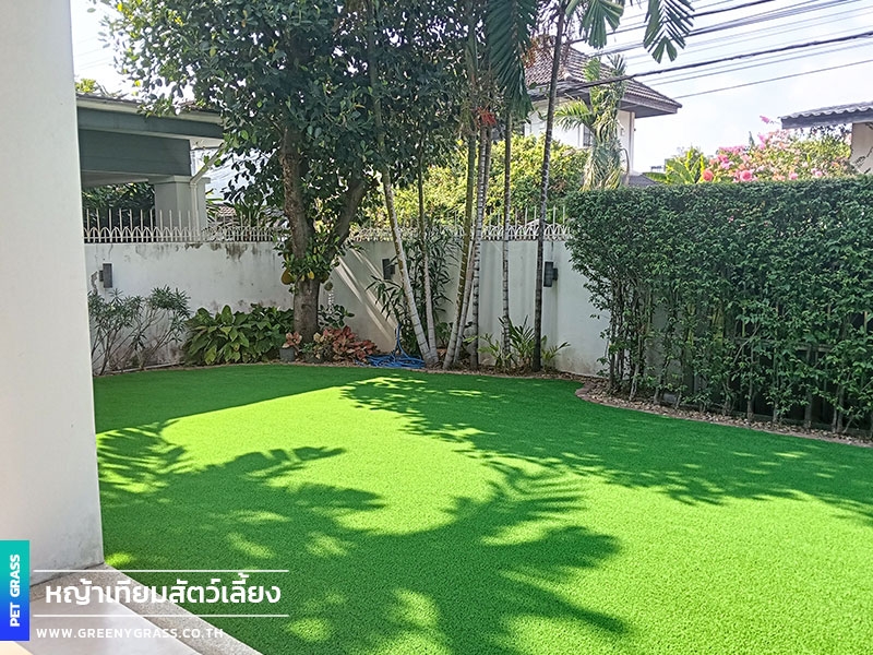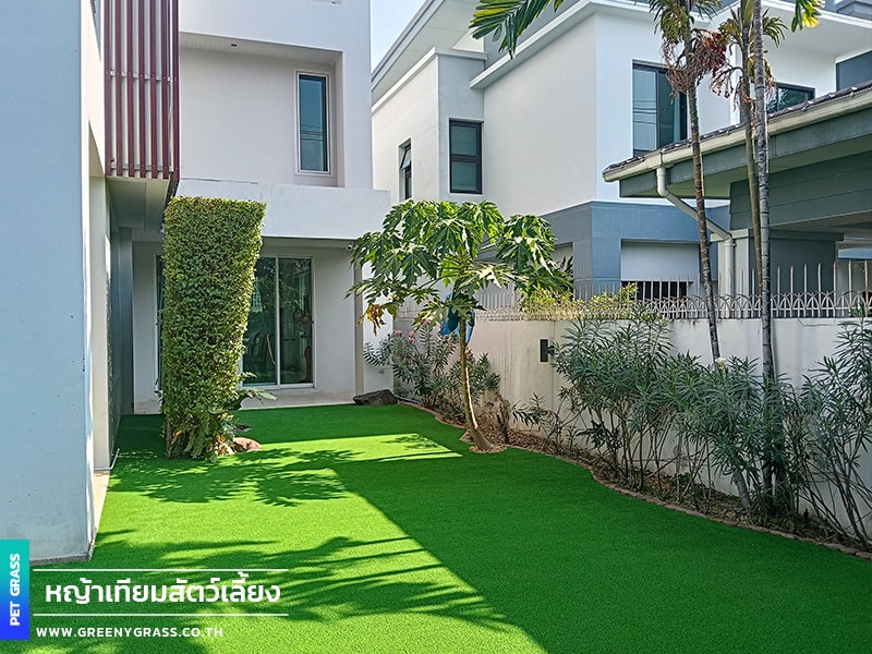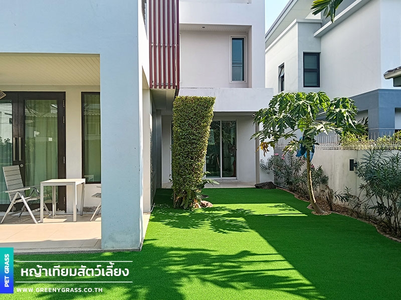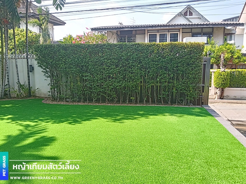ตกแต่งสวน บ้านพักซอยรัชดาภิเษก อีกหนึ่งผลงานติดตั้งสนามหญ้าสำหรับพื้นที่สวนภายในบ้าน ที่ออกแบบให้เป็นมุมพักผ่อนและพื้นที่วิ่งเล่นสำหรับสัตว์เลี้ยง ช่วยเพิ่มความร่มรื่น สะอาด และใช้งานได้สบายในทุกวัน เพื่อเพิ่มความปลอดภัยและความสบายในการใช้งาน ไม่ลื่น ดูแลง่าย ด้วยเทคโนโลยีระบายน้ำไว พื้นจึงแห้งเร็ว สะอาดง่าย ลดปัญหาความชื้นสะสมและคราบโคลนหลังฝนตก ให้พื้นที่พร้อมใช้งานได้ทันที