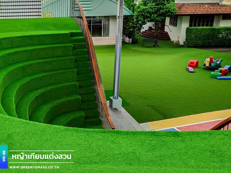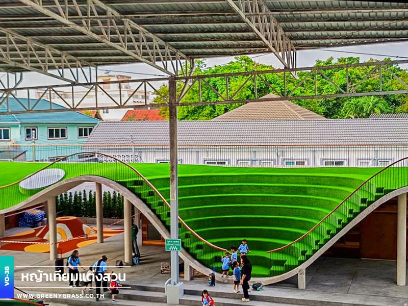 ปรับภูมิทัศน์ โรงเรียนพร้อมคิด โซนที่ออกแบบมาเพื่อดึงดูดทุกสายตาด้วยดีไซน์ที่มีเอกลักษณ์ กลายเป็นจุดสนใจของเด็กนักเรียน และเป็นบริเวณที่พร้อมใช้งานตลอดเวลา ทั้งในการเรียนรู้ การพักผ่อน และการทำกิจกรรมร่วมกัน เลือกติดตั้งด้วยหญ้าที่มีความนุ่มและยืดหยุ่นสูง รองรับทุกการใช้งาน ไม่ว่าจะเป็นมุมอ่านหนังสือ หรือนั่งเล่น เอนกายตามสไตล์เด็ก ๆ ก็ไม่บาดผิว ปลอดภัยต่อการใช้งาน อีกทั้งยังทำความสะอาดง่าย ช่วยลดเวลาในการดูแลของบุคลากร
