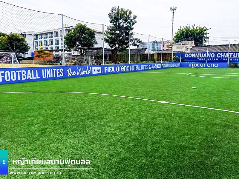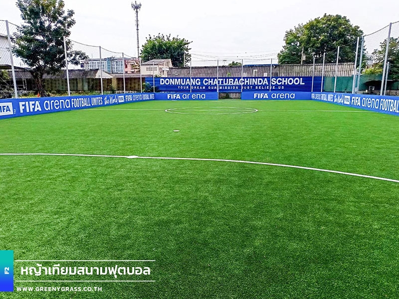 สนามฟุตบอล โรงเรียนดอนเมืองจาตุรจินดา เป็นอีกหนึ่งสถานศึกษาที่เลือกใช้หญ้ารุ่นใหม่ ที่ใช้งานหรือฝึกซ้อมได้อยู่ตลอด โดยไม่ต้องเติมเม็ดยางหรือทรายเป็นประจำ ช่วยลดค่าใช้จ่ายในการดูแลสนามในระยะยาว พร้อมสัมผัสที่นุ่มลดโอกาสบาดเจ็บจากการล้มและสไลด์ เพิ่มความปลอดภัยให้กับผู้เล่น